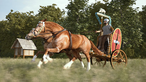 Rekonstruktion eines spätkeltischen Streitwagens.